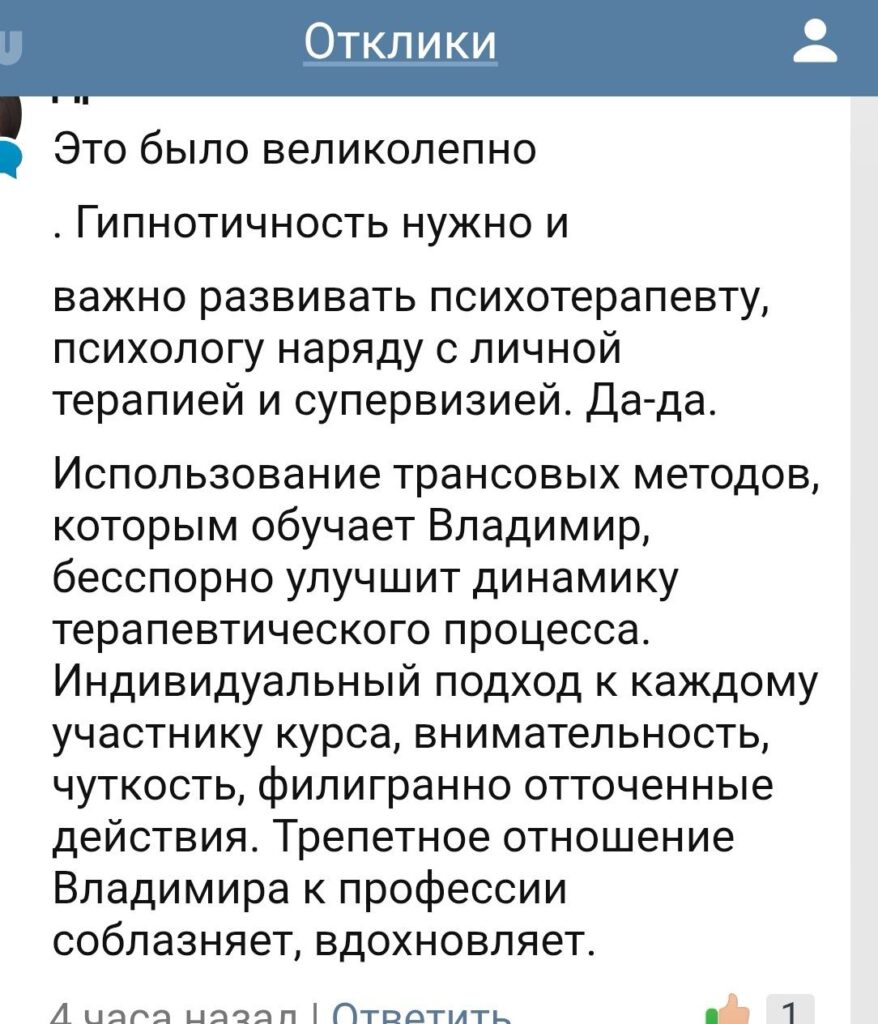 Тренируя себя, обучая себя, осознавая собственную гипнотичность, гипнабельность, легче понимаешь, как это применить и на практике.