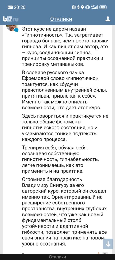 Огромная благодарность Владимиру Снигуру за его авторский курс, который он создал именно так. Ориентированный на расширение собственного пространства, внутренних глубоких возможностей, что уже как новый фундаментальный столб устойчивости и адаптивной гибкости, позволяет применять все свои знания на практике на новом уровне осознания.Степан Решетников