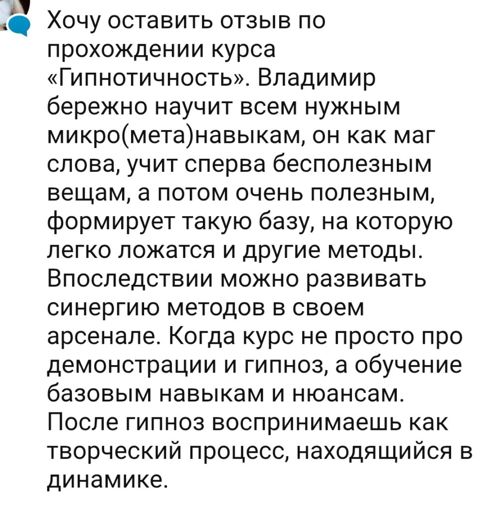 Этот курс не даром назван «Гипнотичность». Т.к. затрагивает гораздо больше, чем просто навыки гипноза. И как пишет сам автор, это – курс, соединяющий гипноз, принципы осознанной практики и тренировку метанавыков.